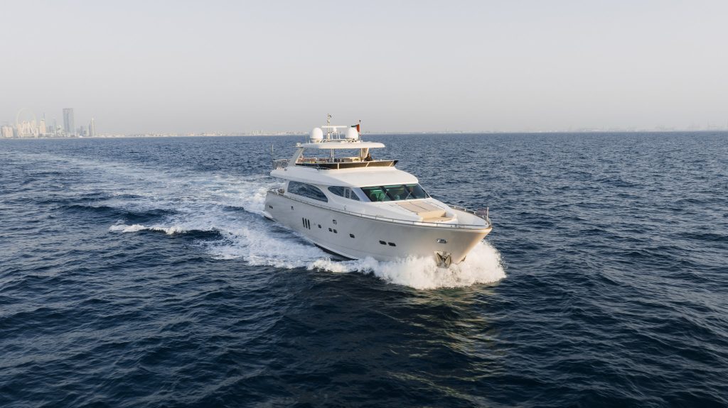 Premium 90ft Horizon yacht is located at Dubai UAE for rent with 3 rooms and capacity of 14 persons. It is managed and sailed by 4 professional experienced crew. This yacht is Horizon brand and it is manufactured in 2022. Barbecue service is allowed in this yacht and equipment is available upon prior request. 90ft Horizon yacht rental is available for 5500 AED Per Hour in Dubai.