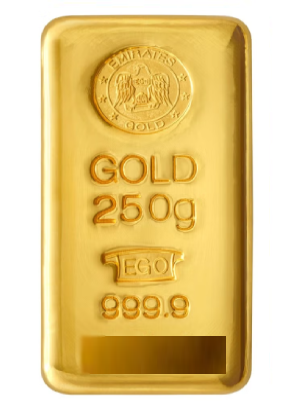 Emirates Gold produces a wide range of gold bullion bars which are refined up to 999.9 Emirates Gold Bar displays the attention to detail and craftsmanship associated with this well respected manufacturer. The front of the bar is stamped with the Emirates Gold logo together with the weight and fineness (999.9) of the bar.